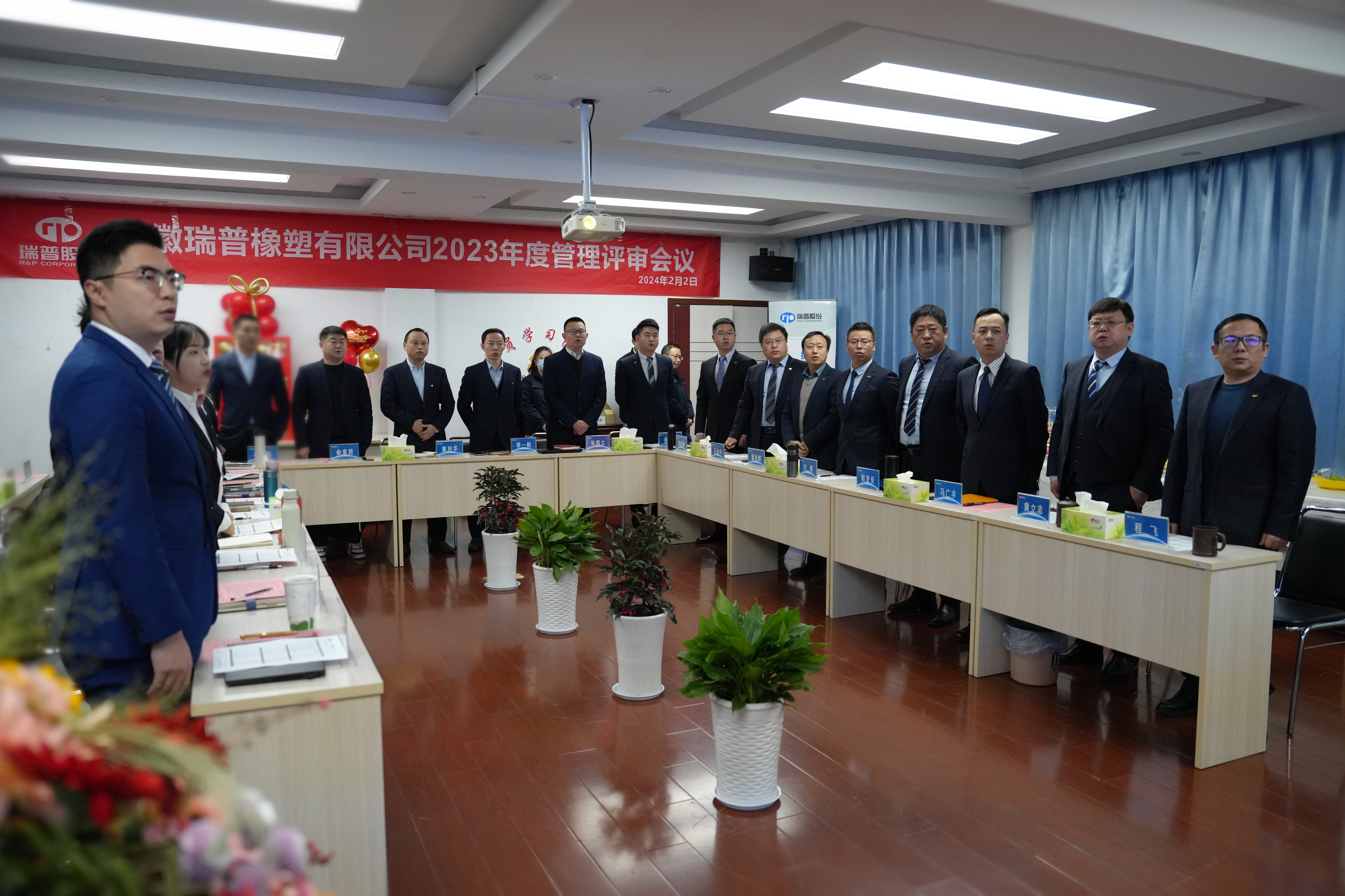 安徽瑞普橡塑有限公司于2024年2月2日上午08點00分在公司三樓會議室召開2023年度管理評審會議。會議由質量總監主導,質量經理主持,公司高管及各職能部門、子公司負責人共30余人參加會議。