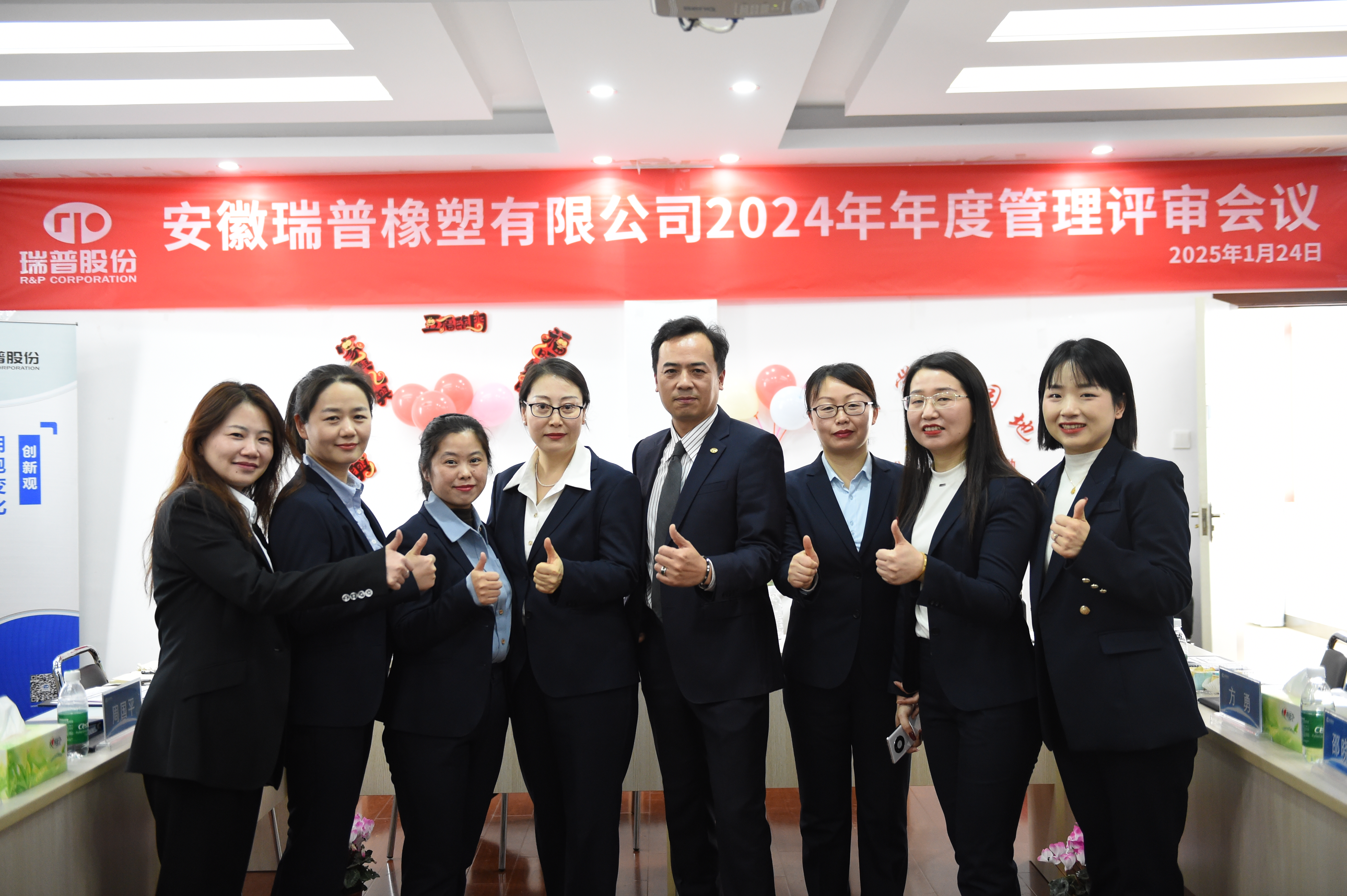安徽瑞普橡塑有限公司于2025年1月24日上午8時,在寧國公司三樓會議室舉行2024年度管理評審會議。本次會議由集團公司質量部長祝珊珊擔任主持,公司高層管理人員以及各職能部門、子公司負責人共計三十余人出席會議。各職能部門、子公司負責人就2024年度的工作情況進行匯報,并對2025年的工作計劃及提升策略進行規劃。